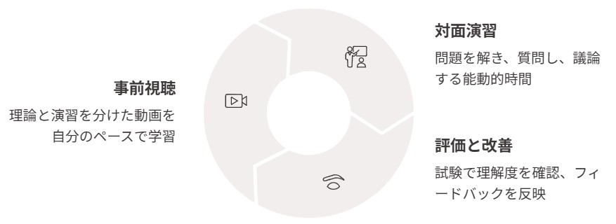 • 対面時間は演習・質問に集中:能動的学習とピアラーニングの促進
